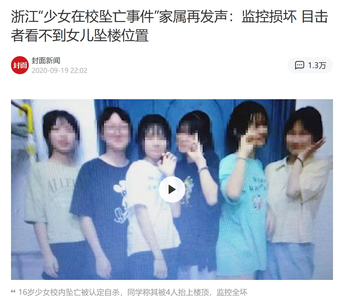 浙江“少女在校坠亡”,学校监控损坏,无法知道真相